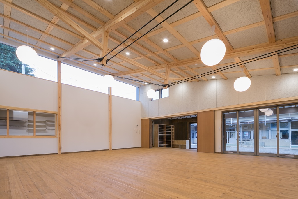 竣工時は旧公民館が残っていましたが、解体され広々とした広場が