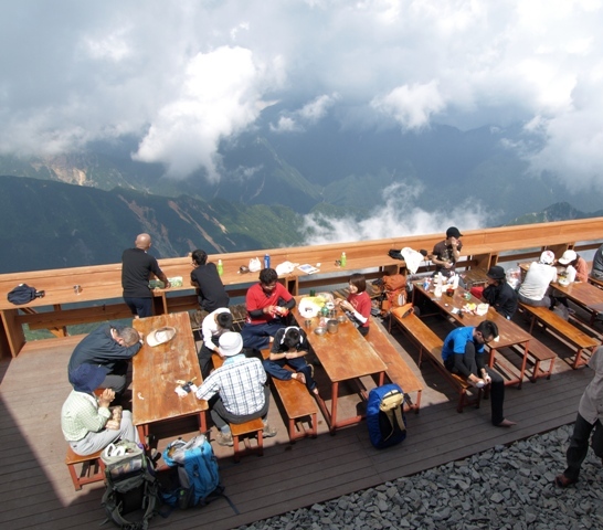北穂小屋の休憩用のデッキがリニューアルしました。