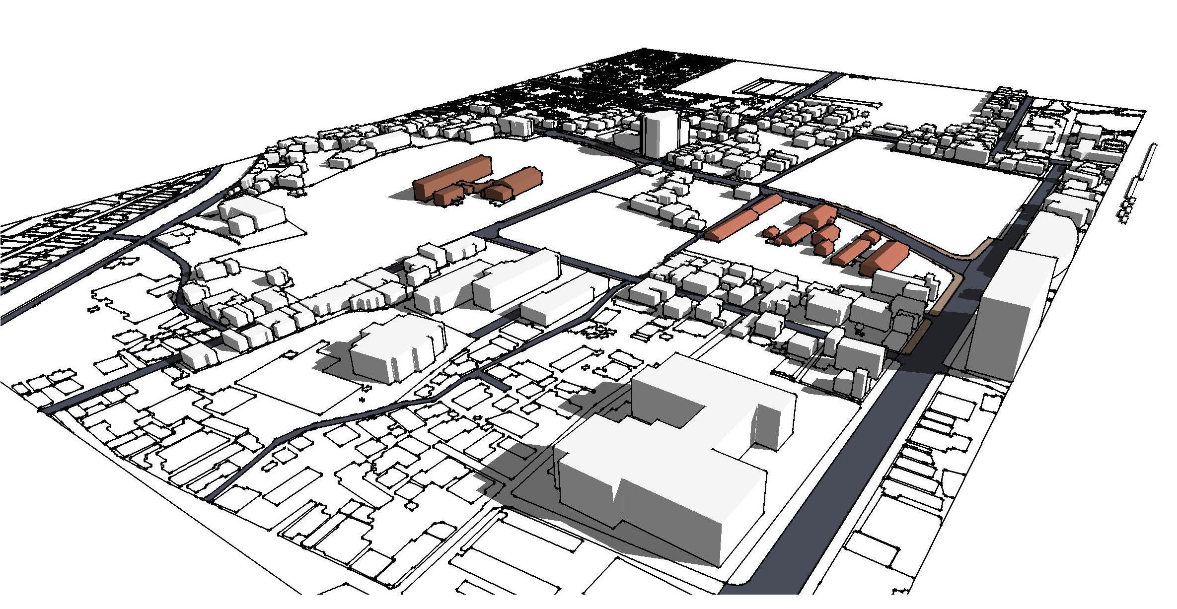 中央のテーブルにはスケール1/500で、カフラス・生物科学研究所を残しながら