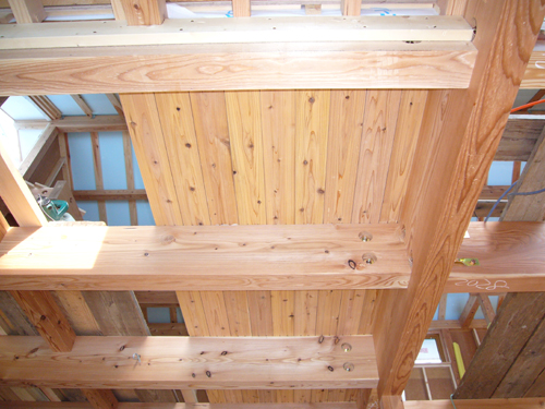 2階床施工中(1階から)