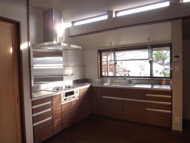 既存の出窓部分を利用し、キッチンをL型に配置しました。