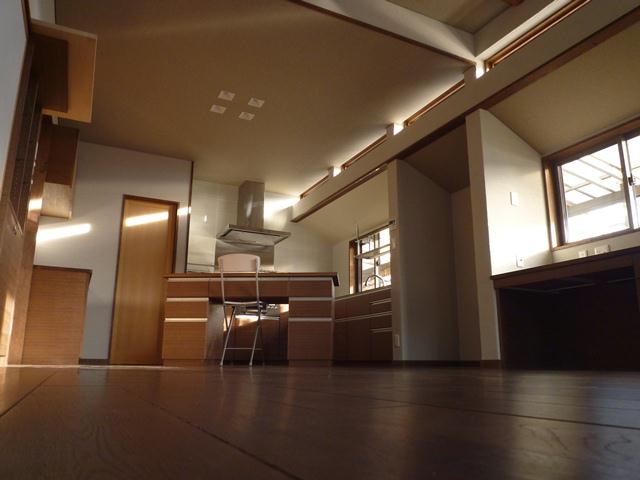 食堂・台所と居間とが別々の部屋に分かれおり、日中でも照明を点けていなければ薄暗くなっていました。解決策として分かれていた部屋を一つの部屋とし、開口部を造り直すことで開放的な明るい部屋としました。