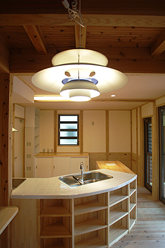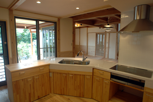 Yさんの家のキッチンは、大工さんが造作工事で造った、