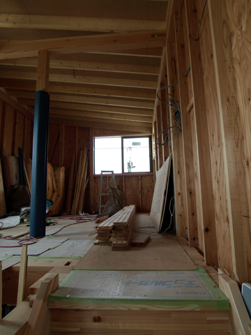 通り土間のある家は、床の施工がほぼ終わり
