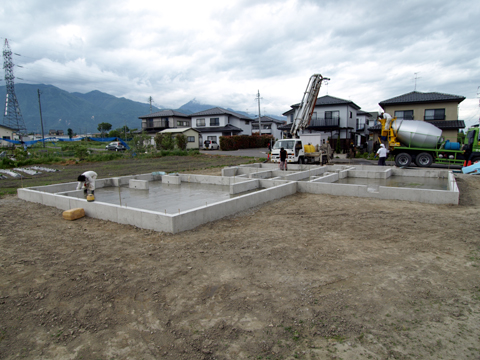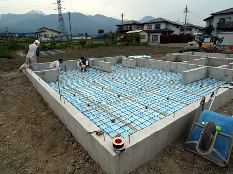 安曇野に広がる家は,現在現場では基礎工事が進み、