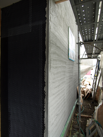 この住宅の外壁は下地をラスモルタル塗りとし、