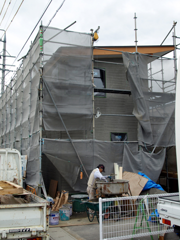 今週の工程は外壁工事へと進んでいます。