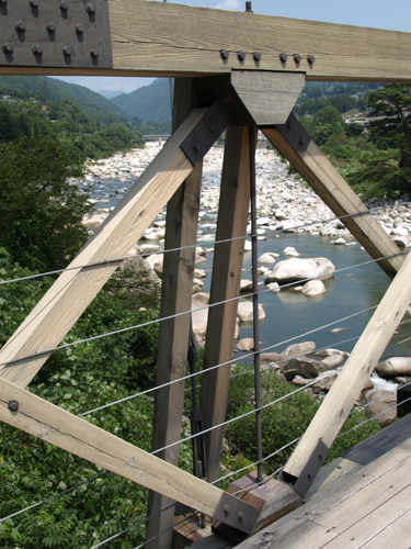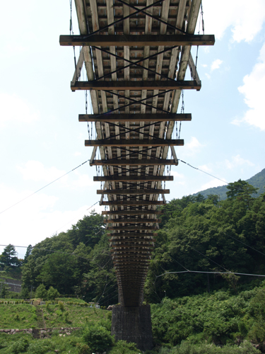 木製の吊橋は、鉄やコンクリートの橋と異なり、とても優雅に見えます。
