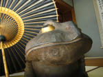 その様な歴史を見ている豪商安藤家にいる木彫りのカエル君。