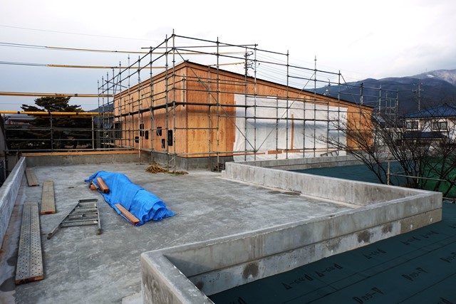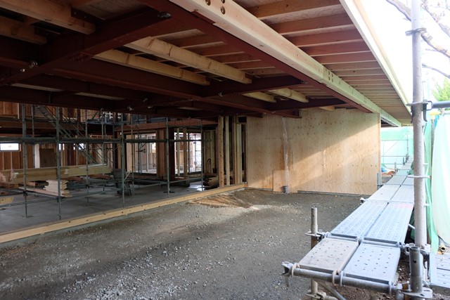現在の主な工事は外壁などの外部仕上げと、内部の木下地に進んでいます。