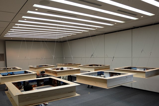 空中に浮かして内側にパネル、模型などを展示しています。