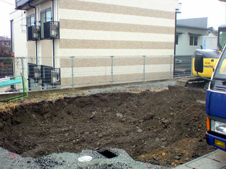 地盤改良とは、土に硬化材を添加して撹拌し基礎下に大きな土の塊をつくることで、建物の自重を支える工法です。この工法はよく軟弱地盤で使われます。気をつけなければいけないのは、土の種類(ローム層など)によっては、添加物と土とが化学反応をおこして六価クロムを溶出させてしまうことです。事前にサンプルを採取して溶出試験を行い安全を確認することが大切です。硬化材には六価クロムを溶出させないものもありますが2割程度割高になるので、今回は試験を行い溶出しないことを確認しました。