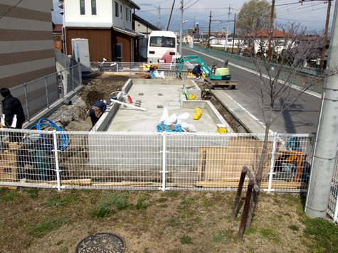 地盤改良工事。基礎工事と終了し、コンクリートの強度試験を行い、