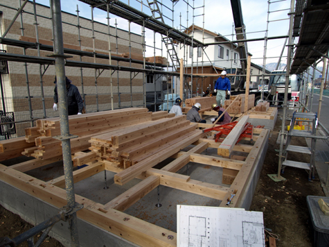 上棟日前日にまず土台を敷きます。