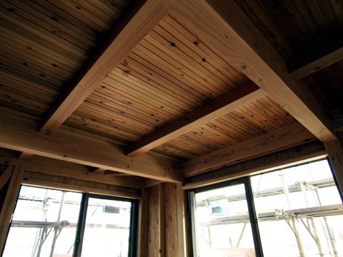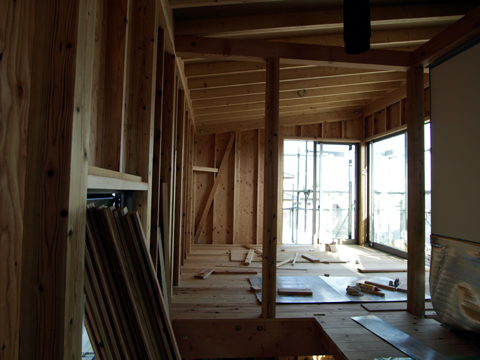 その床材を大工さんに渡して、まず2階の床から張ってもらいました。