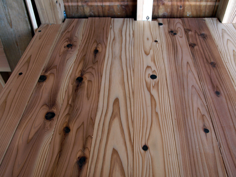床板は長野県の南部、根羽村産の厚さ30㎜の杉無垢板です。