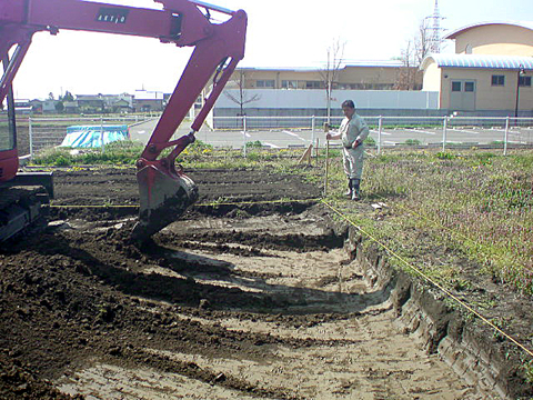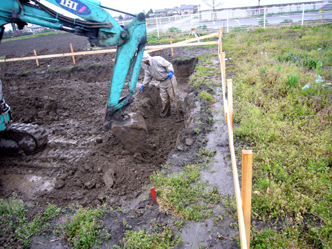 基礎工事に着手する前に、地鎮祭終了後地縄の確認をして、