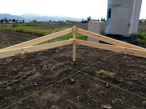 スキ土終了後、丁張りを掛けて基礎工事着手です。