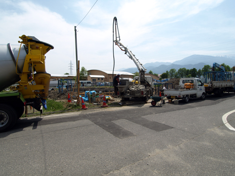 コンクリート打設前に、ミキサー車から荷降ろしをした時点での