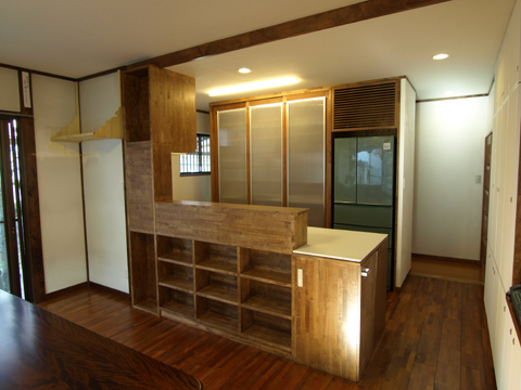 工事内容は部屋の間仕切りの変更、家具やキッチンの造作。