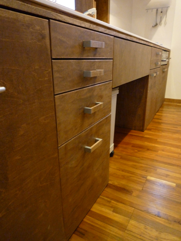 扉は、バーチの18mmの合板を建具職人さんに大手を張ってもらい