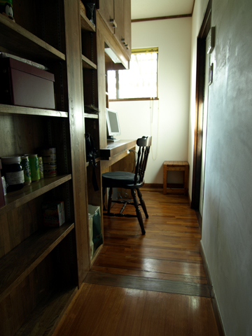 また、キッチンの横の壁一面に収納と電話置場を用意しました。