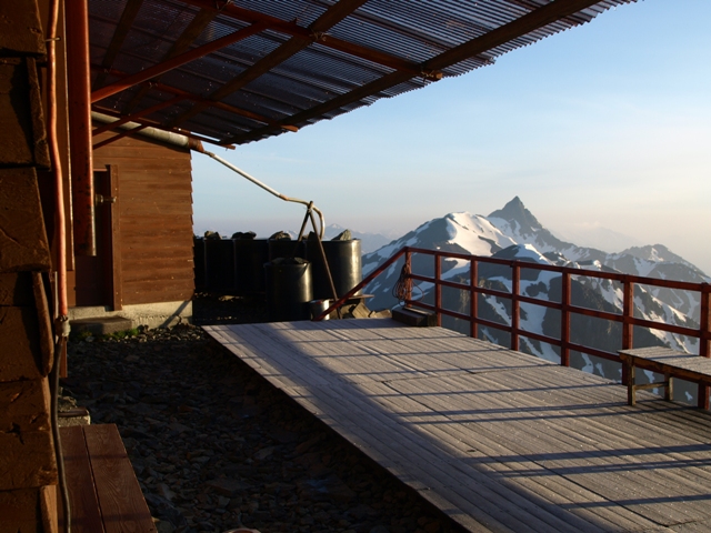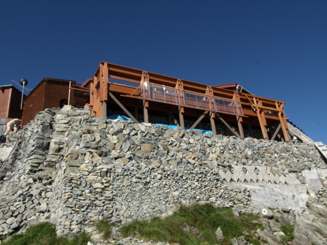 北穂高小屋の木製テラスが新しくなりました。