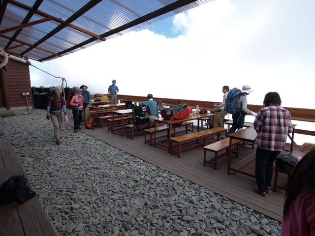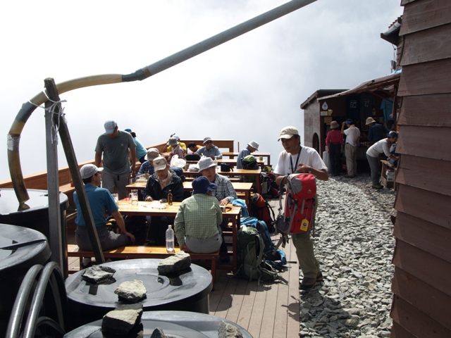 リニューアル前のテラスでは、登山道を行交う人と、テラスで休憩中の